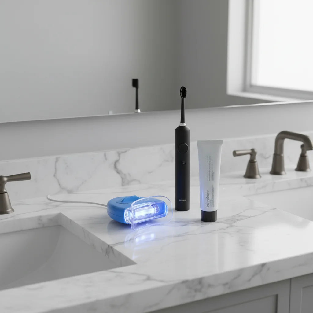 Unlock a radiant smile effortlessly. Our DazzleWhite LED Whitener makes professional results a no-brainer, transforming your look.